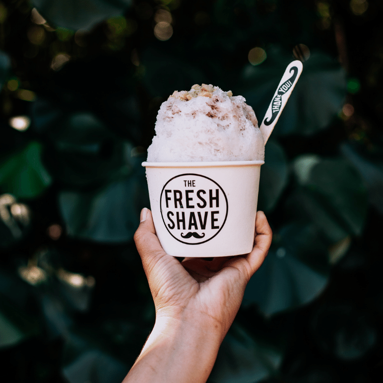 - This is not your every day shaved ice. Hawaiian shaved ice is a frozen treat for all the senses. A bowl of this frosty goodness comes generously topped with fruits like pineapple, coconut and strawberries and drenched with locally sourced syrups. Then to complete this sugary snack, it is topped off with ice cream. Those looking for a more exotic approach can add Japanese red beans or mochi balls.