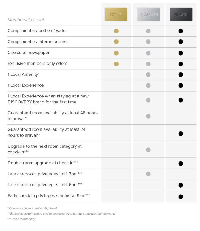 Joining DISCOVERY is free, simple and instant. You'll immediately start to receive Gold-level benefits including complimentary Wi-Fi, bottled water, and newspaper on your next stay at any of our partner hotels.