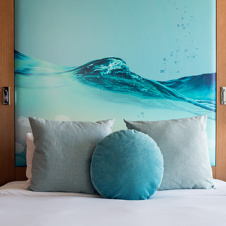 One step inside the posh Pasea Hotel & Spa in Huntington Beach, California and you’ll feel as though you’re on the beach thanks to the cool seaside hues throughout the hotel, a nod to the luxury property’s oceanfront location. As guests enter the hotel, they are treated to a vibrant mural bursting with blues, oranges and greens, reflective of the sea, sand and palm trees just outside the doors. Guest rooms feature teals and aquamarines, and ocean wave prints that connect guests with the laid-back culture of Surf City USA.