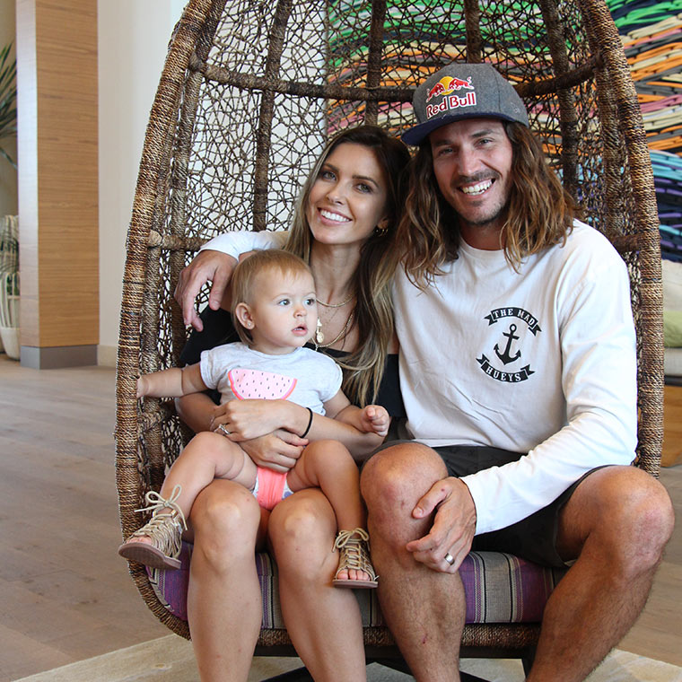 Audrina Patridge, husband Corey Bohan and their daughter Kirra stopped by this Huntington Beach, California, hotel while surfer Bohan was competing in the 2017 Vans US Open of Surfing.