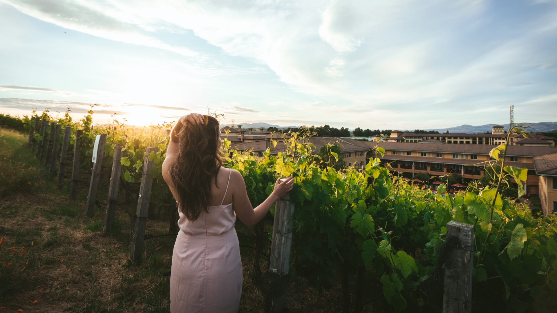 - The sunset backdrop through Napa wine fields at The Meritage Resort