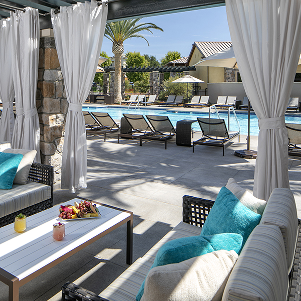 Spending an afternoon lounging by the pool is one of the most relaxing ways to experience the sunny skies and near-perfect summer weather in Napa Valley. Let the stress of the world melt away as you chill out in your private poolside cabana at one of these Napa Valley resorts. Unless otherwise noted, cabana rentals are reserved for hotel guests.